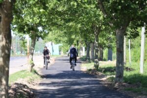 Tras la repavimentación y puesta en valor del Camino Vergara, uno de los principales accesos a la ciudad, avanza la construcción de la Bicisenda: se están realizando los últimos tramos del asfaltado que tiene casi 4 km de largo, 2.60 mts de ancho y contará con iluminación propia.