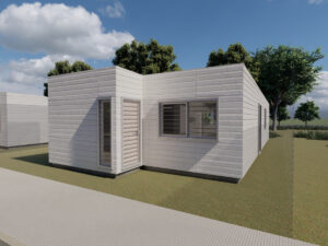 La iniciativa contempla la construcción de ocho viviendas sustentables de 48 m², con tres dormitorios, desarrolladas mediante un sistema modular innovador (SCG1887), que permite la fabricación de las unidades en planta. En este sentido, las viviendas se encuentran prácticamente finalizadas en taller y serán trasladadas para su montaje en el predio mediante grúas.