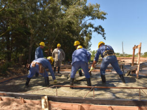 El intendente Fabián Cagliardi recorrió la obra de viviendas modulares que se ejecuta sobre la avenida Mitre, donde actualmente se avanza con el hormigonado de la platea de las primeras cinco unidades, una etapa fundamental para el desarrollo del proyecto.